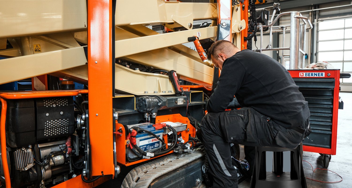Wir reparieren Arbeitsbühnen, Teleskoplader, Radlader, Fahrmischer, Baumaschinen und 2-Wege-Technik – je nach Aufwand vor Ort oder in unserer Werkstatt. Sie senden Modell, Seriennummer und eine Fehlerbeschreibung (gern mit Fotos/Video). Wir übernehmen Diagnose, beschaffen passende Ersatzteile und starten nach Freigabe. Abschließend prüfen wir Funktion & Sicherheit und dokumentieren die Arbeiten.